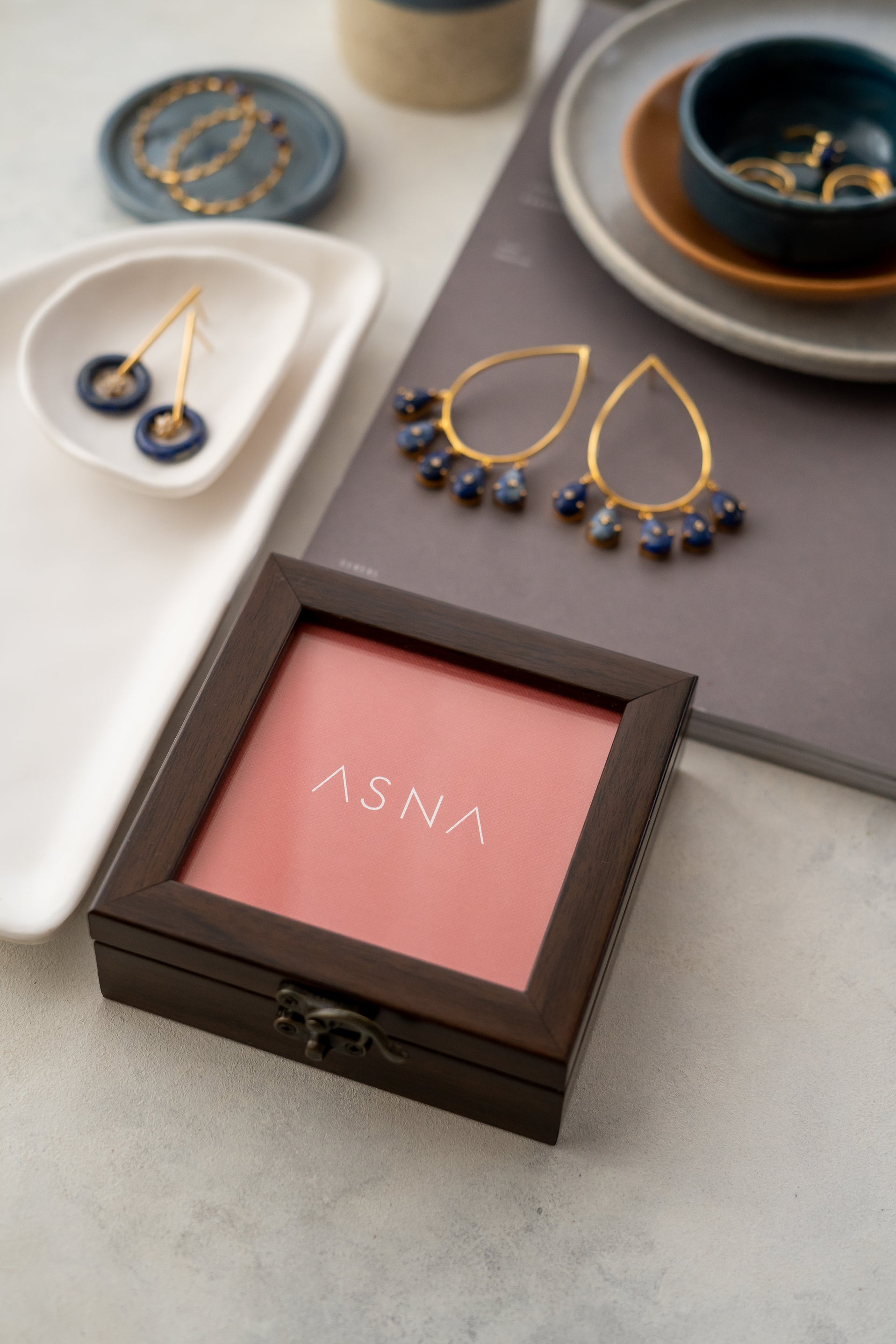 Discover LABEL ASNA's eco-conscious packaging approach. Our jewelry is thoughtfully presented in a reusable wooden box, perfect for storing your precious trinkets and minimizing environmental impact.
